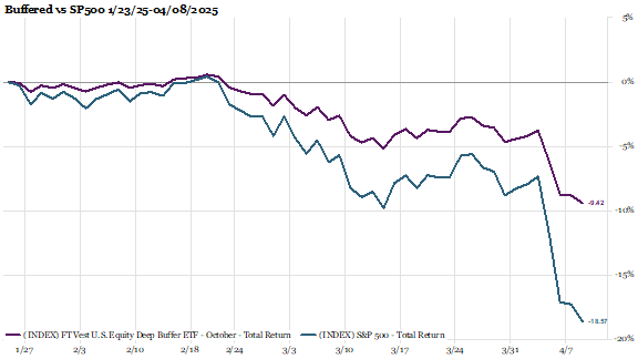 We continue to recommend a position in hedged equity. With U.S. equity valuations near all-time highs, it makes sense to have a little downside protection.  As shown below, our buffered ETF positions provided some nice downside protection this past spring when markets sold off sharply.  Buffered/hedged equity positions help stabilize a portfolio and enhance risk adjusted returns over time.
